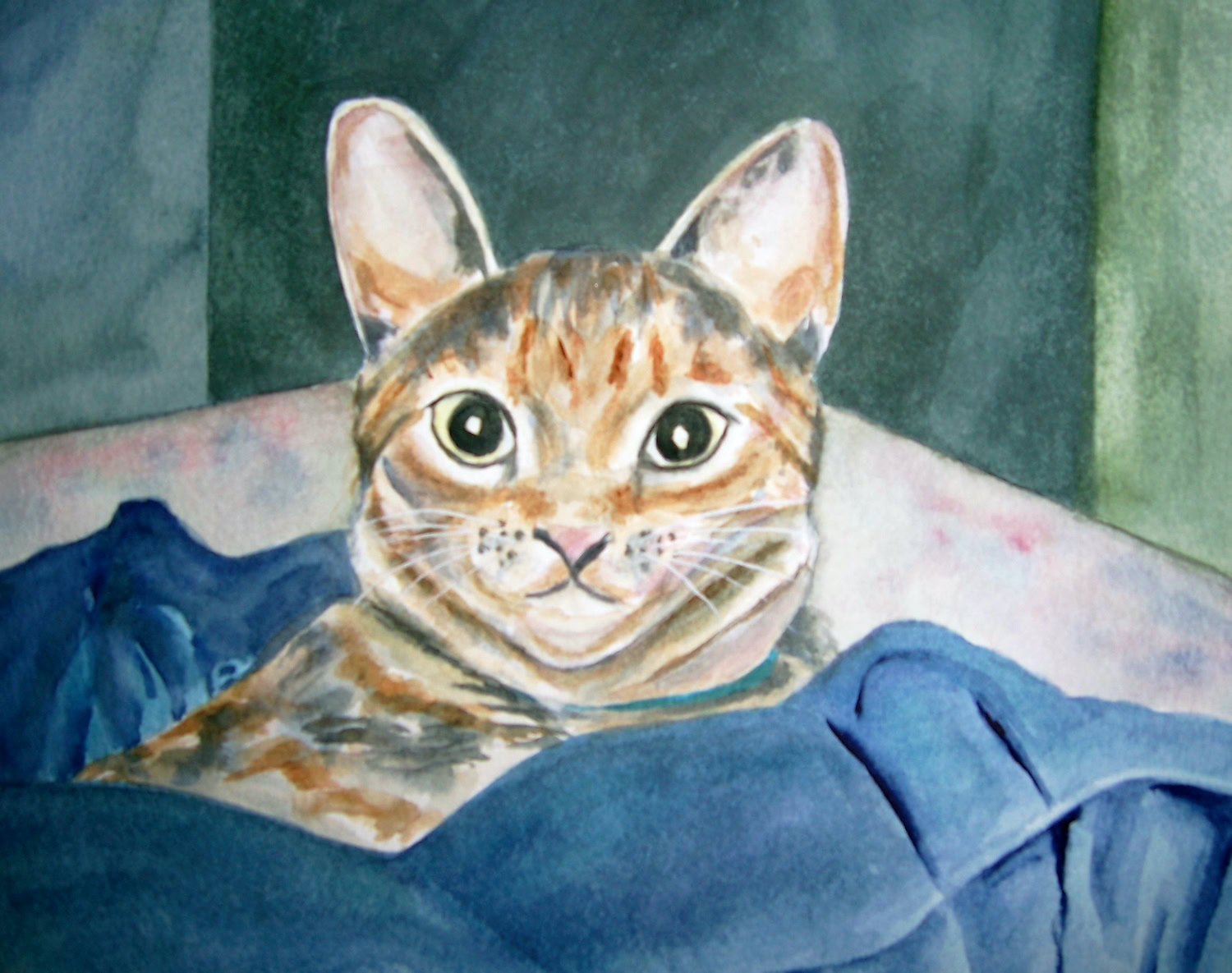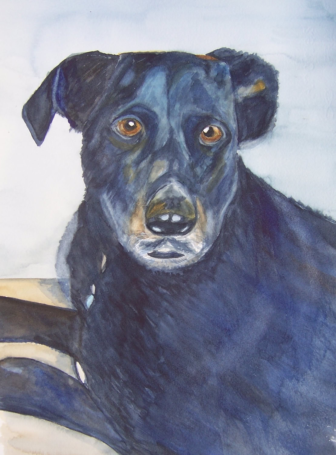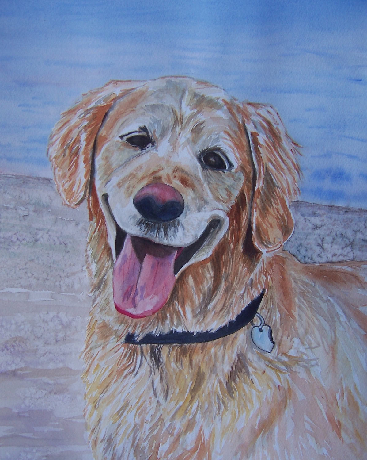 My standard commissions are painted in watercolor, 11xx14, mostly dogs and cats, (sometimes fish!), matted and protected in a glassine envelope for $150. I have also been commissioned to paint birds, horses, cows,